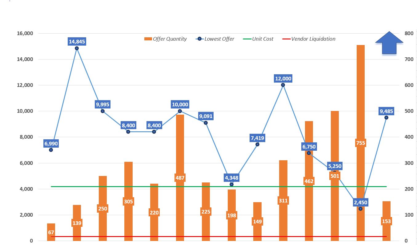 - MK-10 Components: another day of mean reversion has the lowest offer price basically holding the average line closely, but trades in a very narrow range typically and typical new listing can be priced between 4,200 and 4,500.
