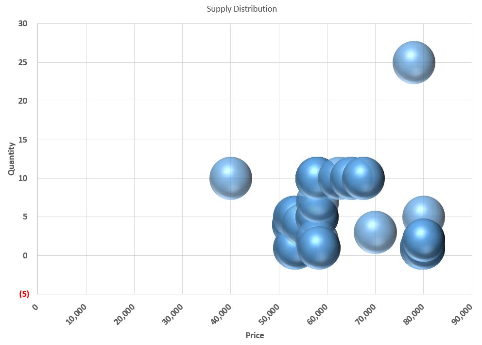 Summary: Price has jumped to 40,000 lowest offer this morning along with a more than 200% infusion to supply, great sellers market in the works if there’s demand at these prices levels.